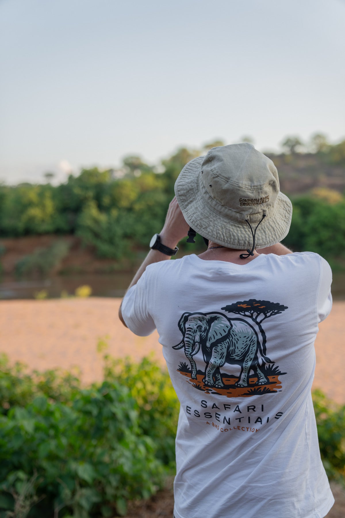 - Styles and specs: Unisex, dyed cotton, with Safari Essentials embroidered on front, elastic toggle for size adjustment